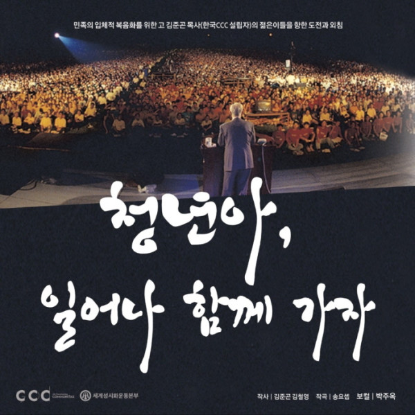 이 슬로건을 걸고 대학생 선교를 기반으로 민족복음화운동을 주도했던 한국대학생선교회(CCC)와 성시화운동 창설자 고 김준곤 목사의 비전과 메시지를 담은 곡 <청년아, 일어나 함께 가자> 가 12일 공식 발매됐다.