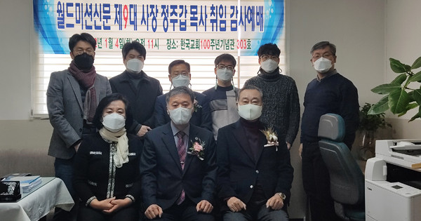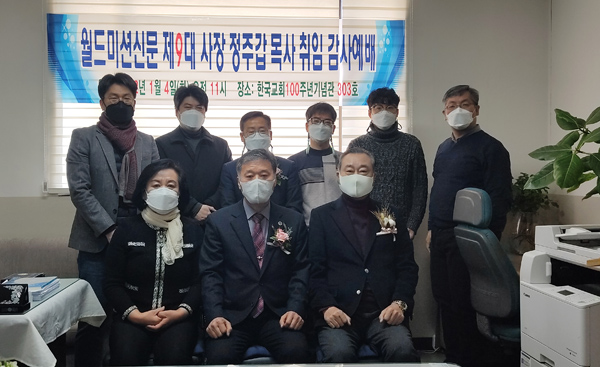 월드미션신문 제9대 사장에 정주갑 목사가 취임했다. 이와 관련, 지난 4일 한국교회백주년기념관 3층 월드미션신문 사무실에서 정주갑 목사의 제9대 사장 취임감사예배를 드렸다.