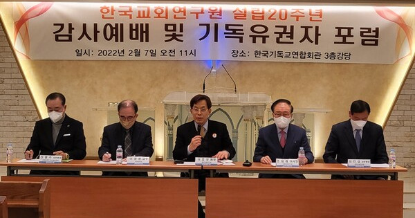 한국교회연구원(원장 이효상 목사)이 설립 20주년을 맞아 7일 한국기독교연합회관에서 감사예배를 드리고, 한국교회의 건강한 방향성을 제시할 것을 다짐했다. 특이 이날에는 대선을 앞두고 ‘기독교 유권자 정치참여 어떻게? 투표참여 어떻게?’를 주제로 설립 20주년 기념포럼을 개최했다.