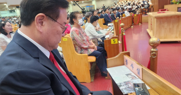 조전혁 전 의원, 여의도순복음교회 예배 참석
