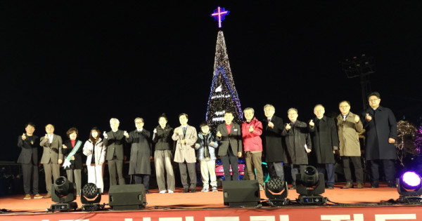 충청남도기독교총연합회(충남기총, 총회장 박귀환 목사)는 지난 21일 오후 충남도청 앞 광장에서 성탄트리 점등식을 개최하고, 인류를 구원하기 위해 이 땅에 오신 아기 예수 탄생의 기쁨을 축하했다. 특히 충남도청 시민들과 함께 성탄의 의미를 되새기며 이웃을 돌아보는 아름다운 축제 한마당을 벌였다.