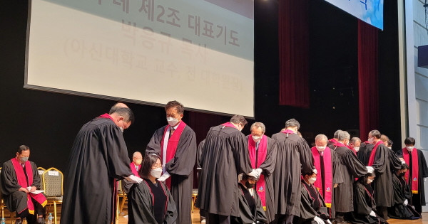 이어 박조준 목사(웨이크사이버신학원 명예총장)가 설립자 메시지를 전했고, 임재환 총회장이 목사 서약의 문답을 진행했다.