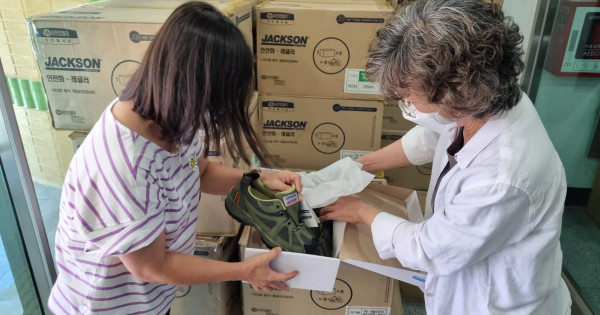 안전화는 유한킴벌리에 납품하는 업체(대표 오길환)에서 기부를 받은 것으로, 이곳은 지난번 마스크 20만장과 코로나 방호물품도 기부한 바 있다.