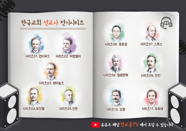 (사)한국교회총연합(대표회장 이영훈 목사, 이하 ‘한교총’)은 지난달 출간한 한국교회 선교사 전기 시리즈 제1~11권의 오디오북 스트리밍 영상을 공식 유튜브 채널인 한교총TV에 15일부터 무료 배포한다.