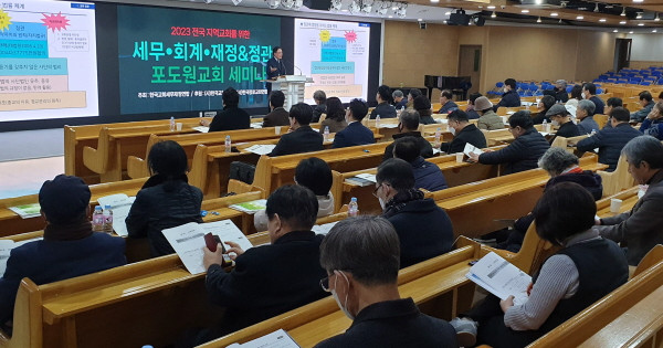 2023 전국 지역교회를 위한 세무·회계·재정 첫 순회세미나가 2월 16일 오후 2시 부산 포도원교회(김문훈 담임목사)에서 한국교회총연합과 한국장로교총연합회 후원, 한국교회세무재정연합(공동대표 김영근 회계사, 이상복 세무사, 이하 한세연) 주최로 열렸다.