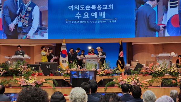 한국교회총연합(이하 한교총)은 21일 여의도순복음교회에서 6.25 전쟁 73주년, 정전협정 70주년 한국교회 기념예배를 진행했다.