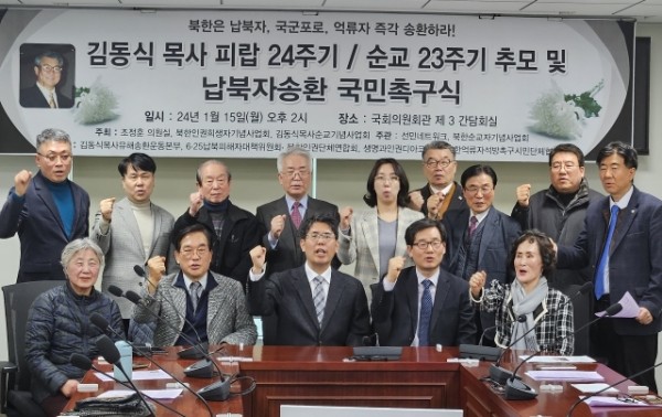 이와 관련, 15일 오후 서울 여의도 국회의원회관 제3간담회실에서 김동식 목사 피랍 24주기 및 순교 23주기 추모 납북자 송환 국민촉구식이 개최됐다.