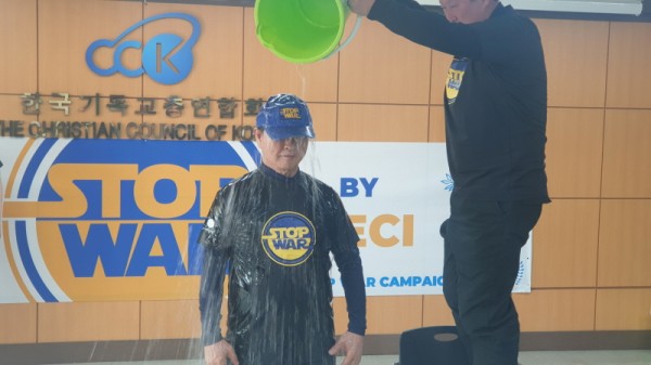 한국기독교총연합회(대표회장 정서영 목사, 이하 한기총)는 31일 오전 11시 세계경제문화교류협의회(The Eco-Cultural Interchanges of Nation, 이하 ECI)와 함께 한기총 세미나실에서 STOP WAR 캠페인으로 아이스버킷 챌린지를 실시했다.