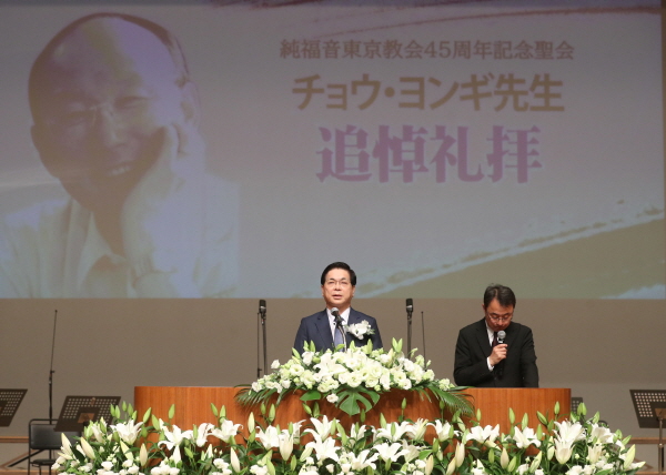 순복음동경교회가 창립 45주년을 맞아 조용기 목사 1주기 추모예배 겸 기념 성회를 가졌다. 이영훈 목사를 강사로 16일 저녁 일본 도쿄에 위치한 신주쿠 문화센터에서 열린 예배에는 일본 전역에서 참석한 순복음교회의 선교사들과 성도들, 일본 목회자들 및 한국에서 참석한 성도들이 함께했다.