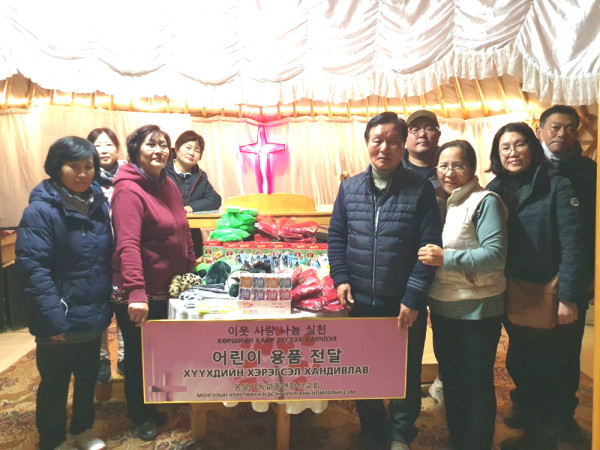 이번 몽골 선교일정 중 이주형 목사는 몽기총을 통해 세워진 가쪼르트 게렐교회 게르성전을 방문하여 문구류와 방한 모자. 장갑 등 어린이 용품과 후원금을 전달했다.