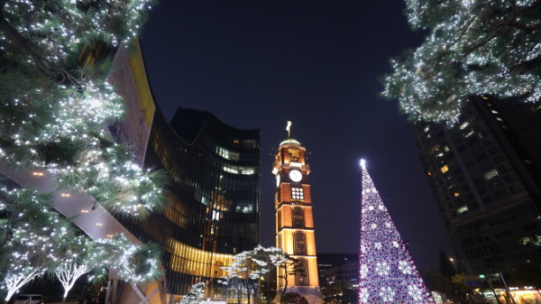 사랑의교회(담임 오정현 목사)는 지난 14일 기쁨의 성탄목 점등식을 가졌다. 교회 앞 마당인 사랑글로벌광장에 설치된 ‘기쁨의성탄목’은 북한 교회의 회복과 복음적 평화통일을 소망하는 마음을 담았다. 광복 전에 있었던 북한에 세워졌던 2850개 교회 이름을 트리에 새겨 넣어 장식했다.