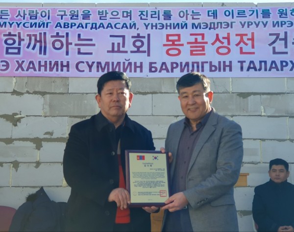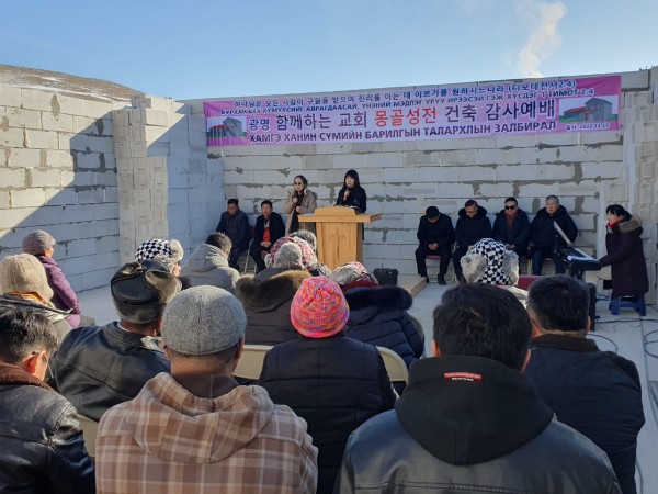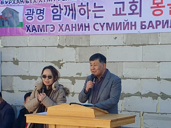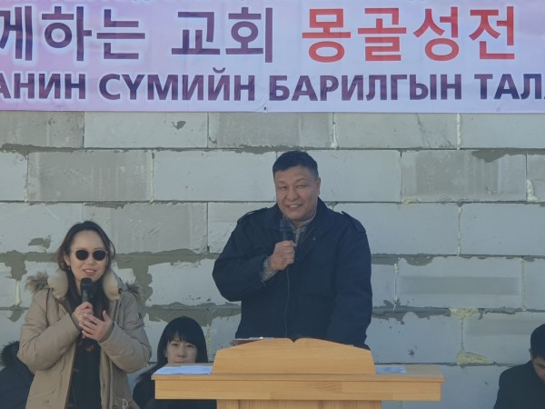 몽골 예수제자교회 어치릉바트 목사는 “이 자리에 교회가 세워지는 것에 감사하다. 이곳은 오늘처럼 추운 맘으로 온 사람들이 따뜻해지는 교회가 될 것이다. 한국의 믿음의 선배들을 통해 받은 은혜에 감사하며 게르성전, 강대상 등 몽골교회를 위해 일해주시며 큰 힘이 되어주시는 김동근 장로님께 감사하다”고 말했다.