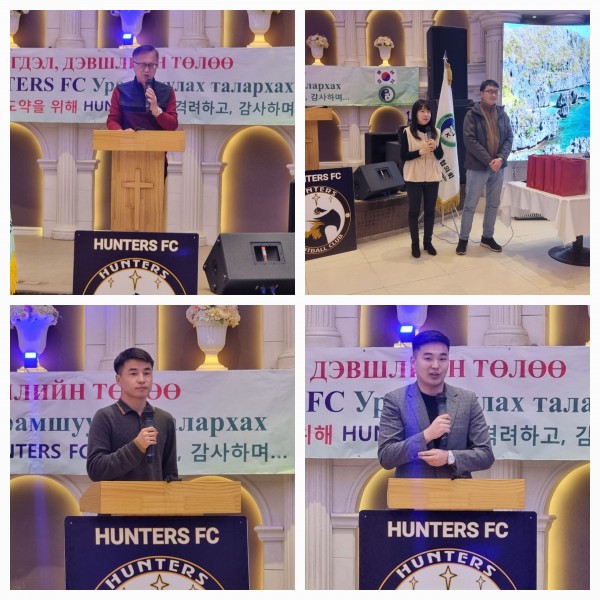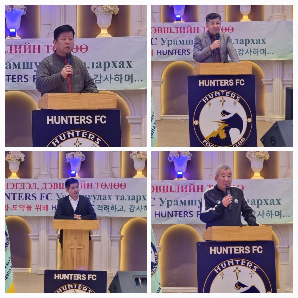 올 8월 구성된 FIFA 등록법인인 몽골 헌터스 기독교축구단(회장,구단주 김동근 장로)의 운영이사로서, 구단주 및 몽골 헌터스 FC 지도목사 알탄쳐지 목사(현. 몽골복음주의협회 회장)와 이사진들이 참석한 가운데 ‘헌터스 FC 격려와 감사의 밤’ 시간을 가졌다.