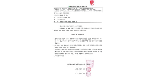 폐지된 충남노회 정기회측, 천안중부교회에 불법 당회장 또 파송