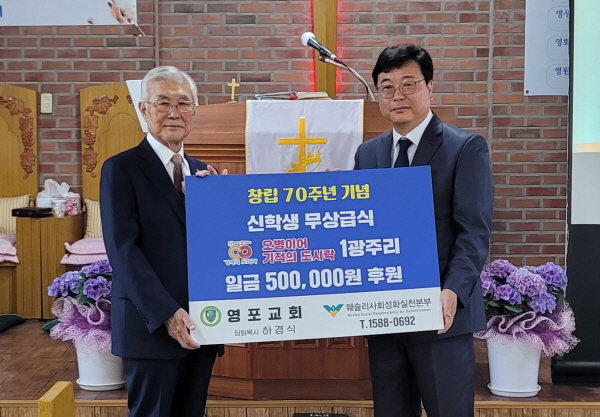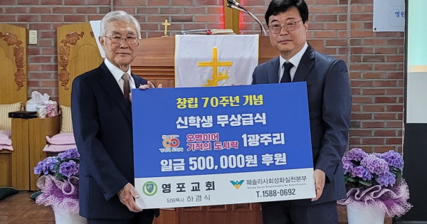한편, 지난 7일에는 웨슬리사회성화실천본부 본부장 이상윤목사와 상임대표 조정진목사가 참석한 가운데 평창 계촌교회(담임목사 우용원) 주일오전 11시 대예배에서 감리교 신학생 무상급식을 위한 ‘오병이어 기적의 도시락’ 후원금 전달식을 가졌다.