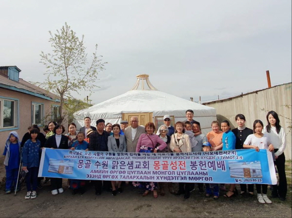 수원 맑은샘 교회는 성도 섬김과 이웃사랑 실천에 힘쓰며 지역민을 섬기는 데에도 열심인데, 선교와 교회건축의 간절한 마음과 아낌없이 드리는 순종으로 몽기총을 통해 몽골에 게르성전을 건축하고 봉헌예배를 드렸다.