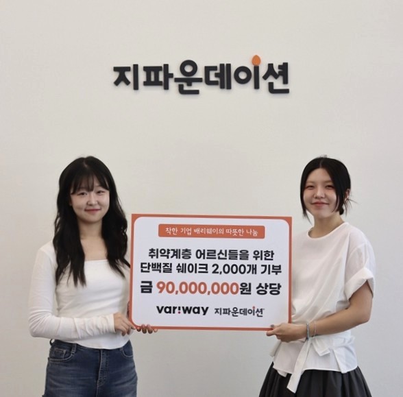 국제개발협력NGO 지파운데이션(대표 박충관)은 배리웨이(대표 이송희)가 국내 취약계층 어르신들을 위해 9천만 원 상당의 단백질 쉐이크 2,000개를 기부했다고 18일 밝혔다.