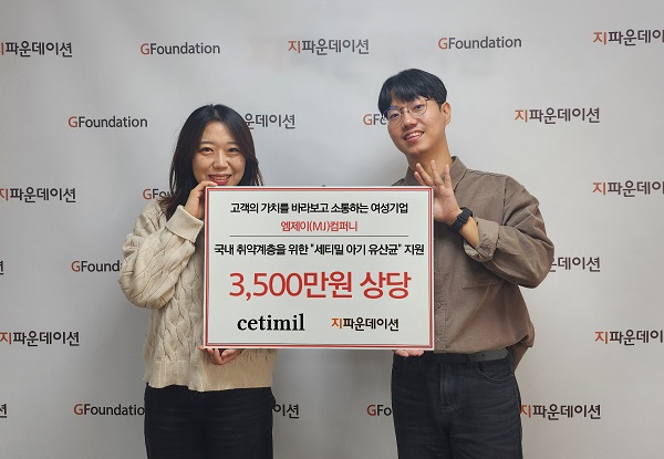 기부 제품은 엠제이컴퍼니의 대표 브랜드인 ‘세티밀(cetimil)’의 아기 유산균 840개로, 해당 물품은 미혼모 가정, 저소득층 가정 등 국내 취약계층 가정에 직접 전달될 예정이다.