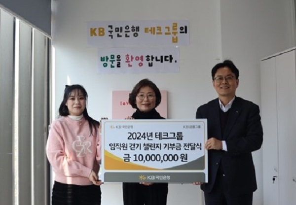 KB국민은행 테크그룹은 지난 해 임직원들이 목표 걸음 수를 달성하며, 건강을 증진시키고, 이에 따라 기부금을 적립해 사회에 기부하는 참여형 사회공헌 프로그램을 직접 기획했다. 그리고 이를 통해 마련한 1,000만 원의 기부금을 자폐인의 창작활동을 지원하는 사회적기업 오티스타의 문구류 및 학용품을 구입하는데 전달하였다.