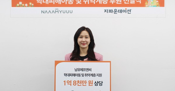 국제개발협력NGO 지파운데이션(대표 박충관)은 ㈜남유에프엔씨(대표 남유숙)가 학대 피해 아동 심리치료비와 취약계층을 위한 비타민을 지원하며, 총 1억 8천만 원 상당의 기부금품을 전달했다고 21일 밝혔다.