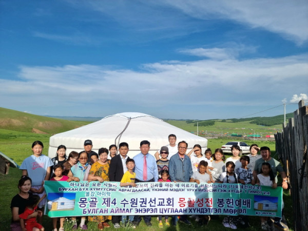 이와 관련, 수원권선제일교회 이종찬 담임목사는 40여년 성실하고 청렴한 목회 중 이번에 몽기총과 함께 몽골에 3개의 게르성전을 건축하고 봉헌예배를 드렸다.