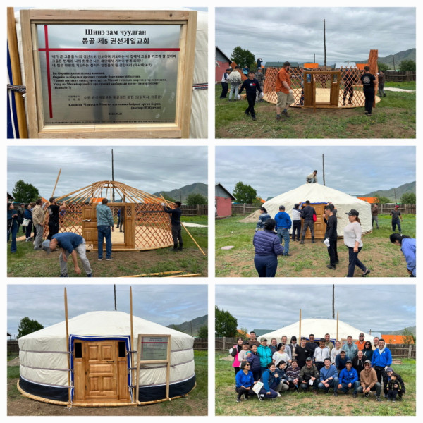 수원 권선제일교회(담임 이종찬 목사)가 몽골기독교총연합선교회(법인회장 김동근 장로)와 함께 몽골 아르항가이 아이막 울지트솜, 볼강아이막 호딱 운드르솜, 볼강 아이막 보고트 솜에 각각 게르성전을 건축했다.