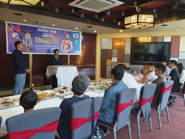 레슬링 바트빌궁선수는 “대회에 나갈 수 있도록 후원해 주신 몽골한국경제지원협의회 김동근 장로님께 감사하다. 기도해 주신 덕분에 하나님께서 도와주셨다. 또한 이렇게 저를 축하하기위해 함께 모여 주셔서 감사하다. 앞으로도 더욱 열심히 하겠다”고 인사하고, 대회 금메달을 김동근 장로에게 걸어주며 감사를 표했다.