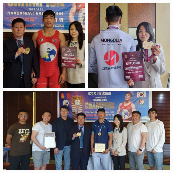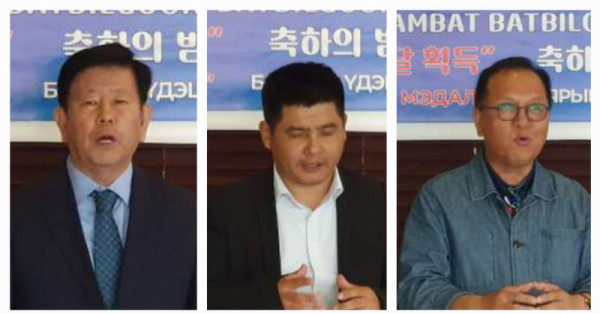 몽골한국경제지원협의회(회장 김동근 장로)는 레슬링 바트빌궁선수에게 축하패를 전달하고 특별 상여금과 꽃다발을 전달했다.