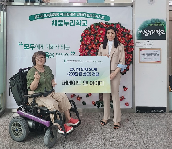 퍼메이드 앤 아이디(대표 최윤영)가 장애인 평생 교육 시설인 채움누리학교에 특별히 제작된 의자를 기부했다는 소식을 14일 전했다.