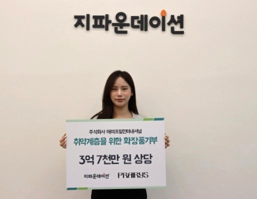 국제개발협력NGO 지파운데이션(대표 박충관)은 주식회사 에이프릴인터내셔널(대표 이세용)이 국내 취약계층 여성청소년 지원을 위해 3억 7천만 원 상당의 자사 화장품 총 11,850개를 기부했다고 13일 밝혔다.