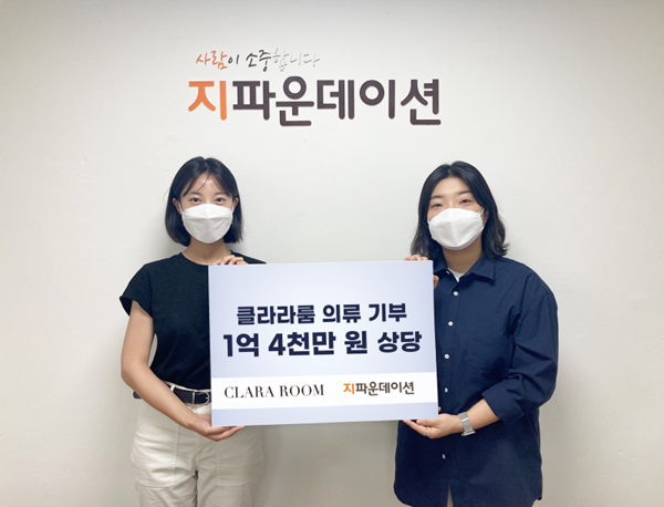지파운데이션 담당자는 “소외된 이웃을 위해 나눔을 실천해 주신 클라라룸에 감사드린다”라며, “의류와 함께 건네 주신 응원도 취약계층에게 닿을 수 있도록 전달하겠다”고 전했다.