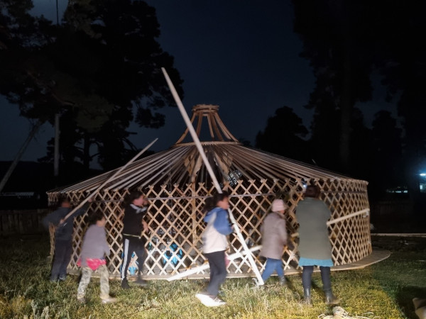 해는 저물고,건초수확과 잣수확 등 농번기라 건축 일손도 부족하고 마을 정전까지 겹쳐 어려운 상황의 연속이었지만, 지체와 타협없는 몽기총 관계자들의 주도적 민첩한 움직임으로 도착 즉시 건축 시작하여 자정무렵 완성했다.
