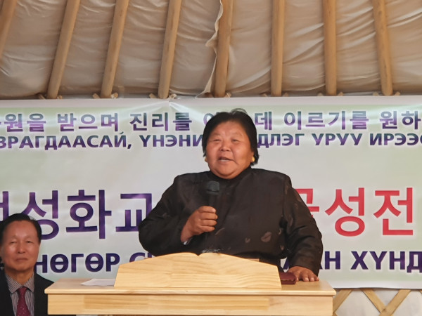 시온 교회를 처음 개척한 다와수렝 전도사는 “하나님은 위대하시다. 이 좋은 날 좋은 분들을 만나게 해주셔서 감사하다. 10년 전 교회를 개척하며 게르천과 양털을 직접 재단해서 게르성전을 건축했었는데, 이렇게 크고 좋은 게르성전을 세워주시고 멀리 한국에서 와서 함께 예배까지 드려주시며 다 해주셔서 정말 감사하다. 이렇게 좋은 성전을 주셨으니 하나님 말씀으로 가득찬 성전으로 사용하겠다”고 인사했다.