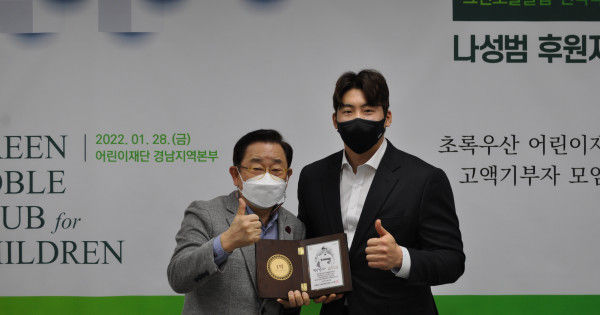 초록우산어린이재단 박원규 경남지역본부장은 “도움이 필요한 아동들에게 꾸준히 관심을 가지며 기부해 좋은 본보기가 되고 있는 나성범 선수에게 감사하다”며 “최근 KIA 타이거즈로 이적한 나성범 선수의 활발한 활약을 응원하겠다”고 전했다.