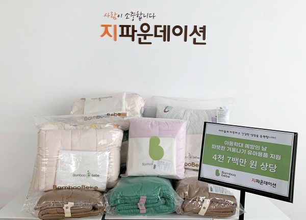 지파운데이션(대표 박충관)은 ㈜더밤부(대표 임재경)가 11월 19일 아동학대 예방의 날을 맞아 취약계층 아동들을 위해 4,800만 원 상당의 육아용품을 기부했다고 17일 밝혔다.