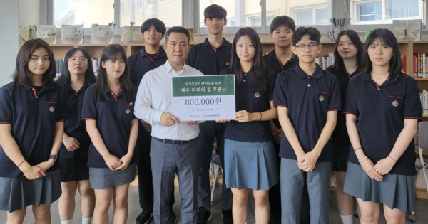 (재)사랑의장기기증운동본부(이하 본부, 이사장 박진탁)는 지난 18일 제주시 세화고등학교(이하 세화고, 교장 윤철훈) 학생자치회 학생들이 만성 신부전 환자들을 위해 사용해 달라며 후원금 80만 원을 ‘제주 라파의 집’에 전달했다고 밝혔다.이번 성금은 학생자치회 봉사부 학생들이 졸업한 선배들로부터 기부 받은 교복을 재판매한 수익금과 체육대회에서 간식 및 음료를 판매한 수익금으로 마련했다. 특히 체육대회에서는 장기기증의 가치를 알리기 위해 장기 모양의 쿠키 판매와 함께 장기기증에 관련한 퀴즈 이벤트를 진행한 것으로 알려졌다.