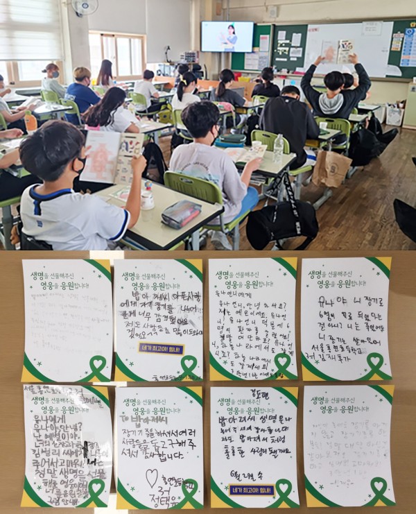 교육에 참여한 5학년 박재인 군은 장기기증인에게 “너무 존경스럽고 대단하세요. 어려운 결정이지만 덕분에 기증을 받은 분은 생명의 은인이라고 생각할 거예요. 하늘의 아름다운 별이 되어 꼭 행복하게 사세요.”라는 감동적인 편지를 보내기도 했다.