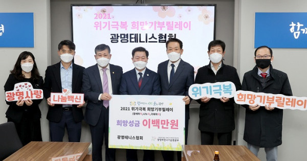 광명테니스협회 배성익 회장은 “적은 금액이지만 좋은 나눔에 동참할 수 있어 기쁘고, 앞으로도 꾸준히 나눔을 전하는 광명테니스협회가 되도록 최선을 다하겠다.”고 말했다.