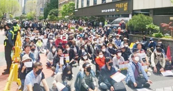 알바이오 네이처셀 주주들이 최근 서울 영등포구 여의도 국민의힘 당사 앞에서 식약처와 중앙약심위를 규탄하는 집회를 개최했다.