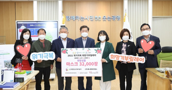 이날 전달 된 마스크는 희망기부릴레이에 사용되며, 지역 내 행정복지센터와 광명시자원봉사센터를 통해 복지사각지대 저소득 가정에게 전달 될 예정이다.