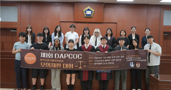 (사)대학을위한마약중독예방재활센터 (이하 답콕. DAPCOC Drug Addiction Prevention-Rehabilitation Center On the Campus. 이사장 두상달)에서 지난 18일 고려대학교 법학 신관 모의법정실에서 ‘답콕 제1회 마약류관리에관한법률 모의재판’을 성공적으로 개최했다.