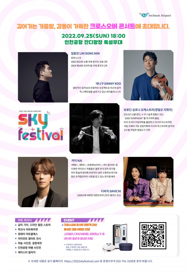 문화와 예술이 함께하는 세계 유일 공항 복합 문화축제인 인천공항 스카이 페스티벌에서 9월 25일 오후 6시, 고품격 클래식 공연이 열린다.