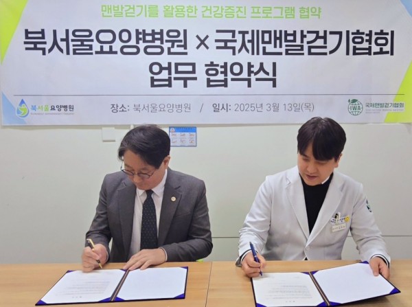 국제맨발걷기협회(회장 김도남)와 북서울요양병원(병원장 김우성)이 13일 북서울요양병원에서 맨발걷기를 활용한 건강 증진 프로그램 공동 개발 및 운영을 위한 업무협약(MOU)을 체결했다.