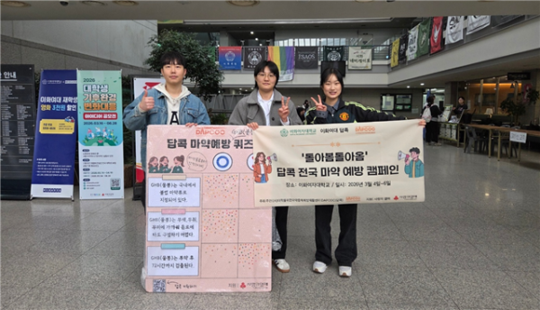 (사)대학을위한마약중독예방재활센터 (이하 답콕. DAPCOC Drug & Addiction Prevention-Rehabilitation Center On the Campus. 이사장 두상달)는 사랑의열매 2026 전국단위 지원사업으로 3월 4일부터 6일까지 3일간 이화여자대학교 학생문화관에서 열린 2026학년도 신학기 동아리박람회에서 답콕 마약예방 캠페인을 진행했다.