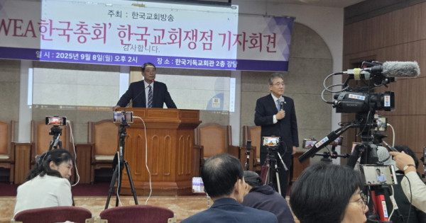 2025 WEA(세계복음주의연맹) 서울총회를 앞두고 한국교회의 찬반 논쟁이 거세지고 있는 가운데 8일 서울 종로구 한국기독교회관에서 한국교회방송(대표 이은재 목사) 주최로 기자회견이 열렸다.