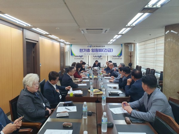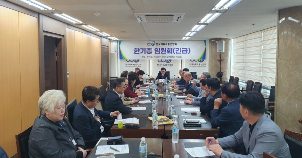 한국기독교총연합회(대표회장 정서영 목사, 이하 한기총)는 8일(화) 오전 11시 한기총 회의실에서 제35-7차 임원회를 열고 주요 안건들을 처리했다. 회의는 참석 22명, 위임 33명으로 성원이 되었으며, 개회선언, 전회의록 채택, 경과 및 사업보고와 안건토의가 이어졌다.