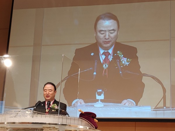 박식순 회장은 “먼저 하나님께 영광 돌리며 역대 중앙회장 주관으로 취임예배를 드리게 되어 더욱 감사하다”며 “R기연 전임회장들의 헌신적인 노력과 봉사로 R기연이 ROTC 중앙의 대표적인 직능단체로 성장했다”고 밝혔다. 또한 “ROTC 후보생의 복음화와 북방선교를 통해 복음통일 비전을 제시하는 등 다양한 선교활동으로 민족 복음화에 큰 역할을 하고 있어서 자랑스럽다”고 인사했다.