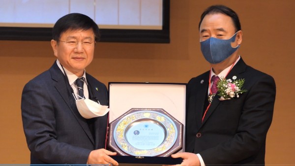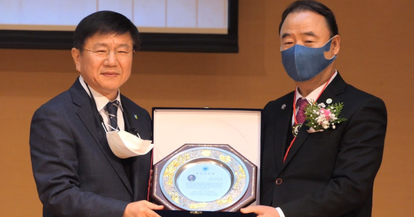 이후 박규직 회장(1기)이 격려사 및 ROTC중앙회 역대회장단 소개를 했으며 양성전(19기)초대동기회장이 박식순 회장에게 취임 축하패를 전달했다.