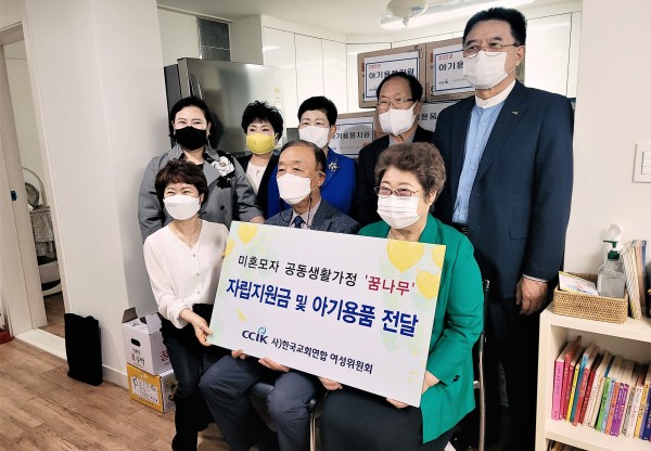 한국교회연합(대표회장 송태섭 목사)이 11일 오전 서울 구로구 소재 미혼모자 공동생활가정 ‘꿈나무’(원장 박미자 권사)를 방문해 자립지원금 100만원과 아기용품을 전달하는 등 아낌없는 사랑과 나눔을 실천에 옮겼다.