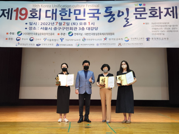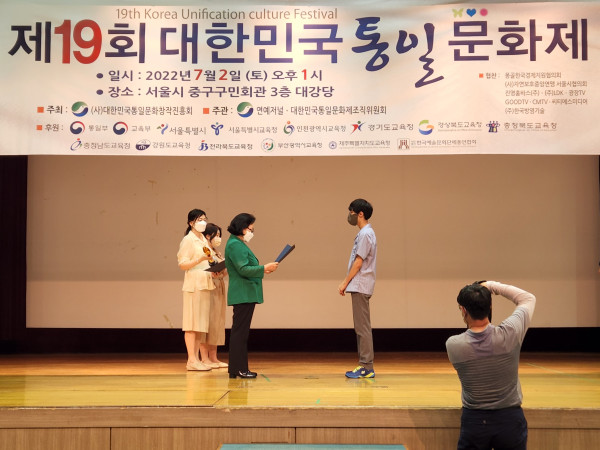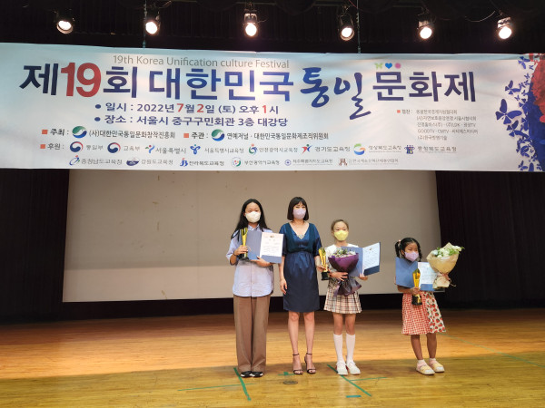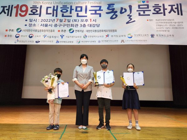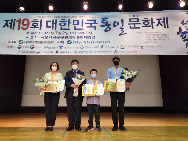 수상과 관련, 정재은 대회장이 시상자로 나서 통일부 교육부장관상에 △통일문학 전은총(몽골국제시범학교6) △통일미술 탁용준(탁화실 대표) △통일무용 조간난(서한우 버꾸춤 예술단원) △통일체육 정일영(전국태권도장연합회 사무총장) △교육음악 김하은(성심여중3)을 수상했다.